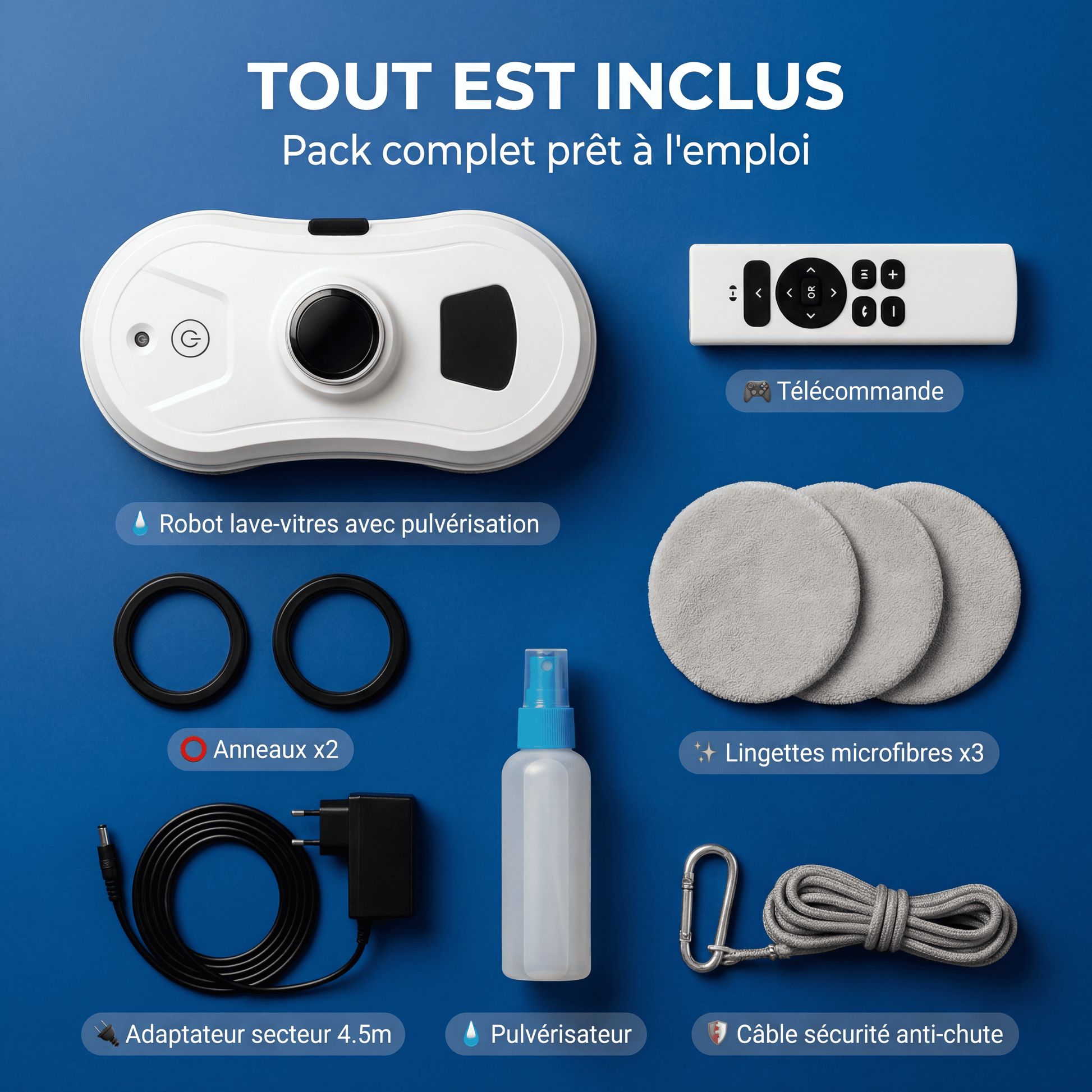 Non. Le robot est équipé d’un système d’aspiration puissant et d’un câble de sécurité qui garantissent une fixation solide en toutes circonstances.
